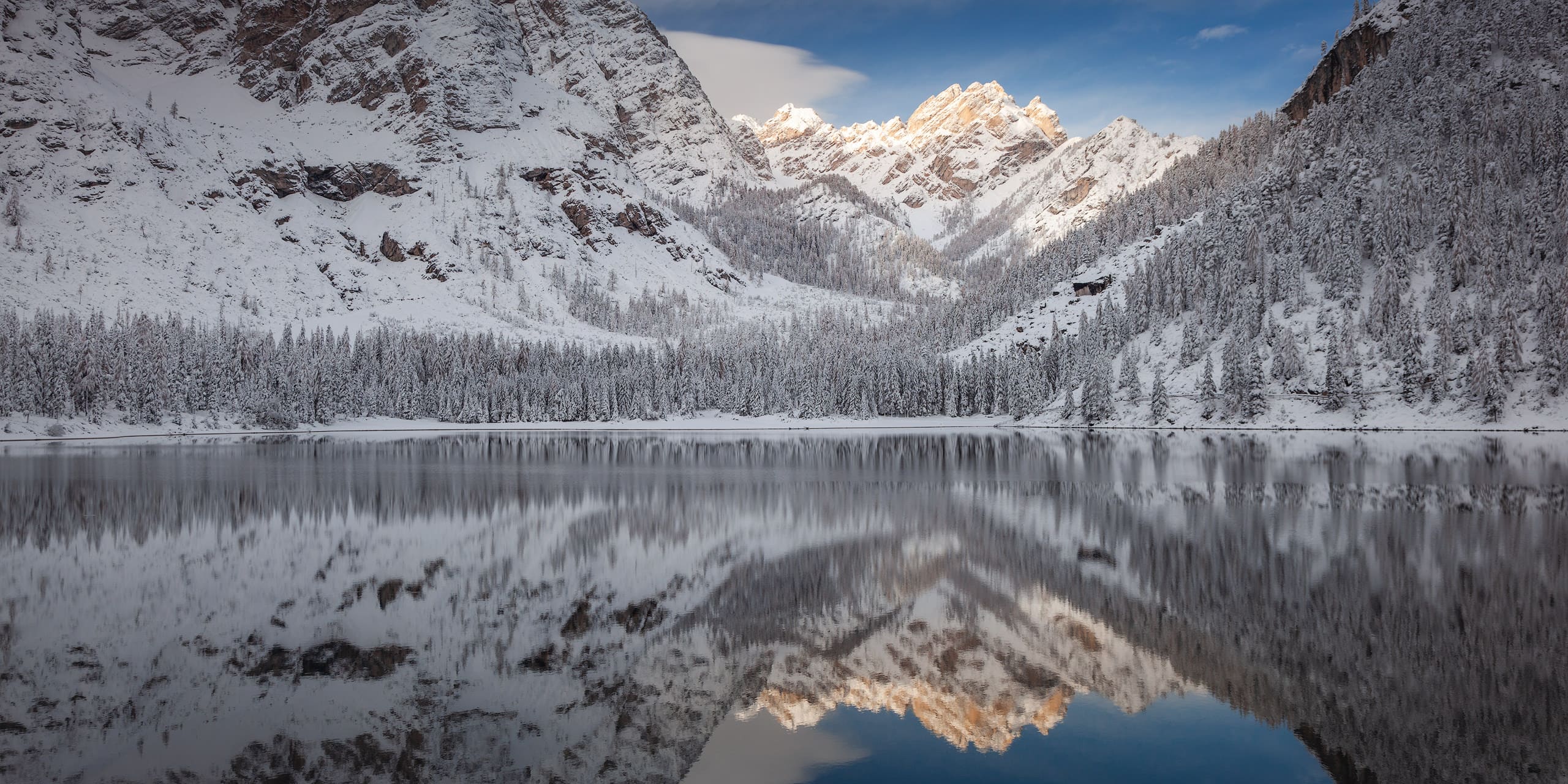 One Weekend this october my brother and I decided to go on a short photo trip to Italy. We had planned to stay over the weekend to photograph some fall colors around Lago di Braies. We did ignore some bad weather warnings and left Vienna on friday noon. After a few hours drive it started snowing. At first it was just a little snowfall but a few kilometers further it became stronger and stronger – and little did we know, that we were about to experience Lago di Braies in winter.