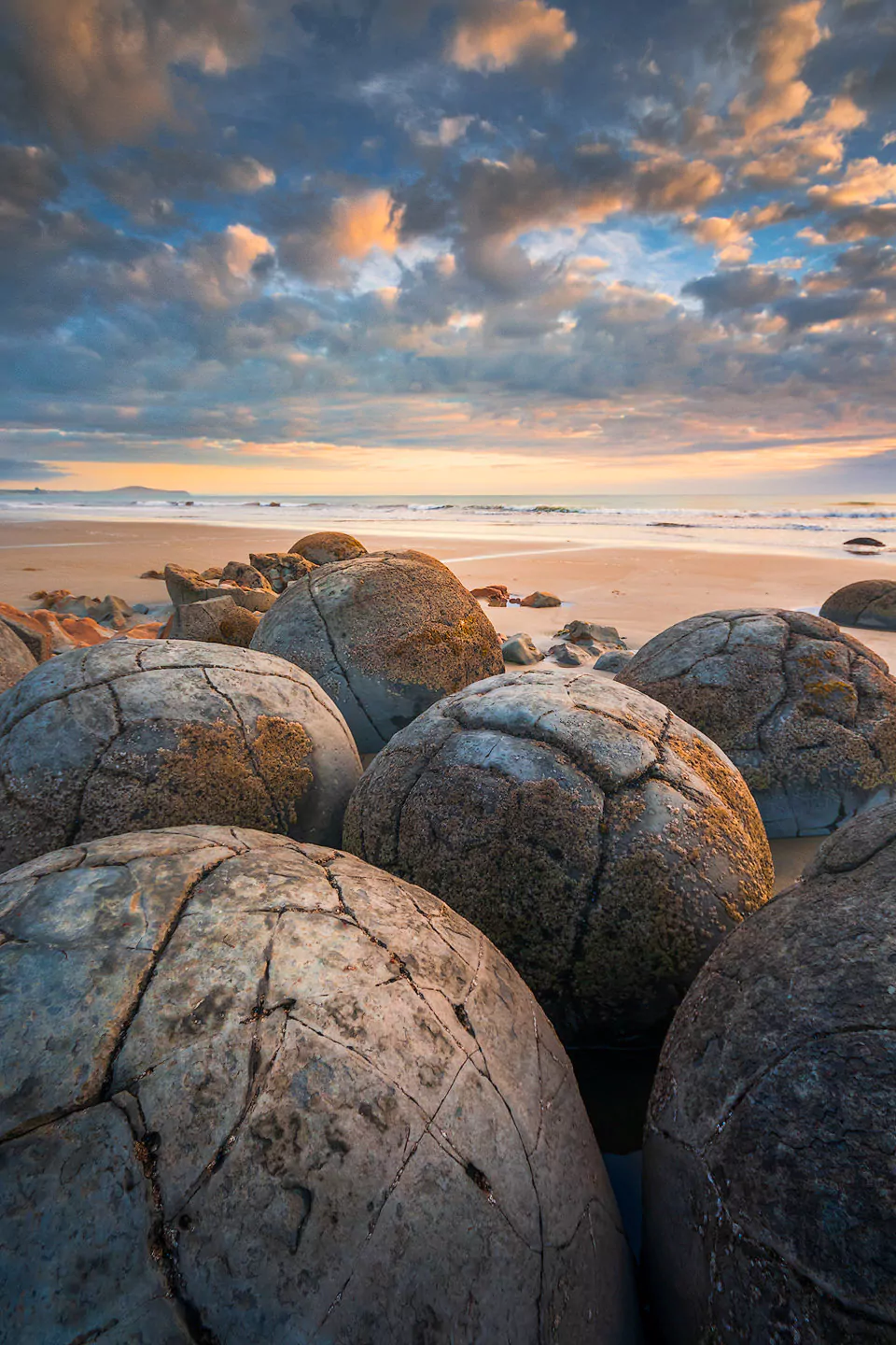 The Moeraki Boulders, scattered along Koekohe Beach on New Zealand‘s Otago coast, are one of those rare locations that feel almost surreal. Perfectly round, cracked spheres emerge from the sand like remnants of another time — often referred to as “dinosaur eggs,” a nickname that captures both their shape and their mystery. Photographing them, however, is more challenging than it might seem at first glance.