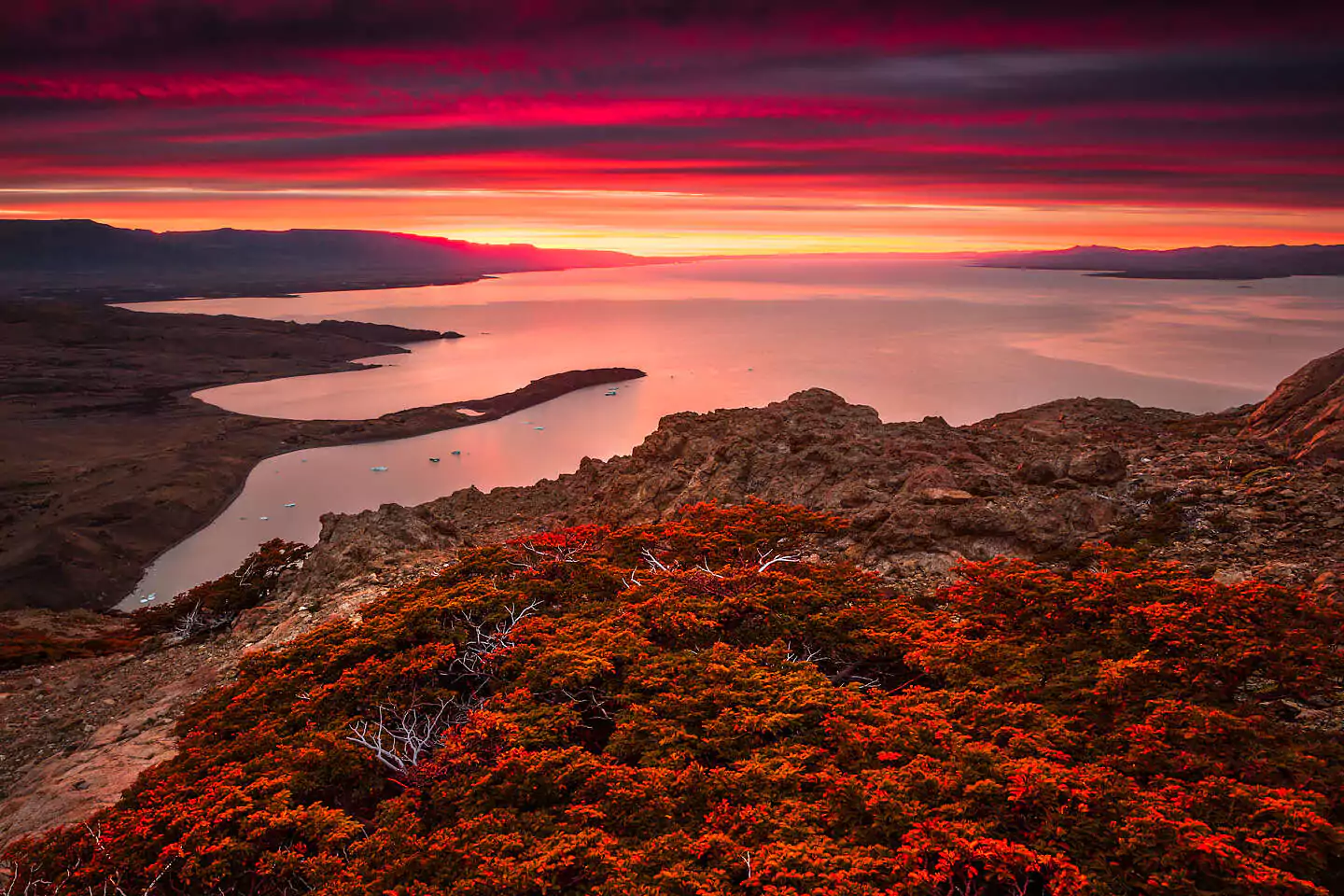 In the seventh week of last year’s Patagonia trip we found ourselves on a rather relaxed backcountry trek alongside Lago Viedma. After hiking through a less visited part of Parque Nacional los Glaciares (see “Last Moments of Light” and “Dawn of the Apocalypse”) the week before we didn’t want to go back to the crowded camps around Fitz Roy and Cerro Torre. Instead we spent a few days exploring the lesser known surroundings of El Chaltén. The second of our treks took us to the beautiful Paso Huemul, from where the views of the southern patagonian icefield are nothing short of spectacular (given the weather cooperates). A bit further down from the pass we found a campsite inside a sheltered lenga forest which we had to ourselves. A pleasent location and also not far from a viewpoint overlooking Lago Viedma, which seemed to extend all the way to the horizon.