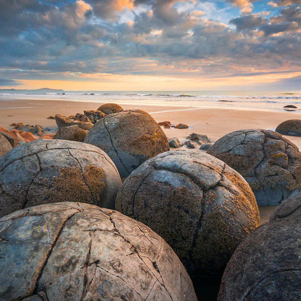 The Moeraki Boulders sit on a tidal beach on New Zealand's Otago coast. I photographed them at sunrise, forgot about the RAW file for a decade, and came back to find a completely different image.